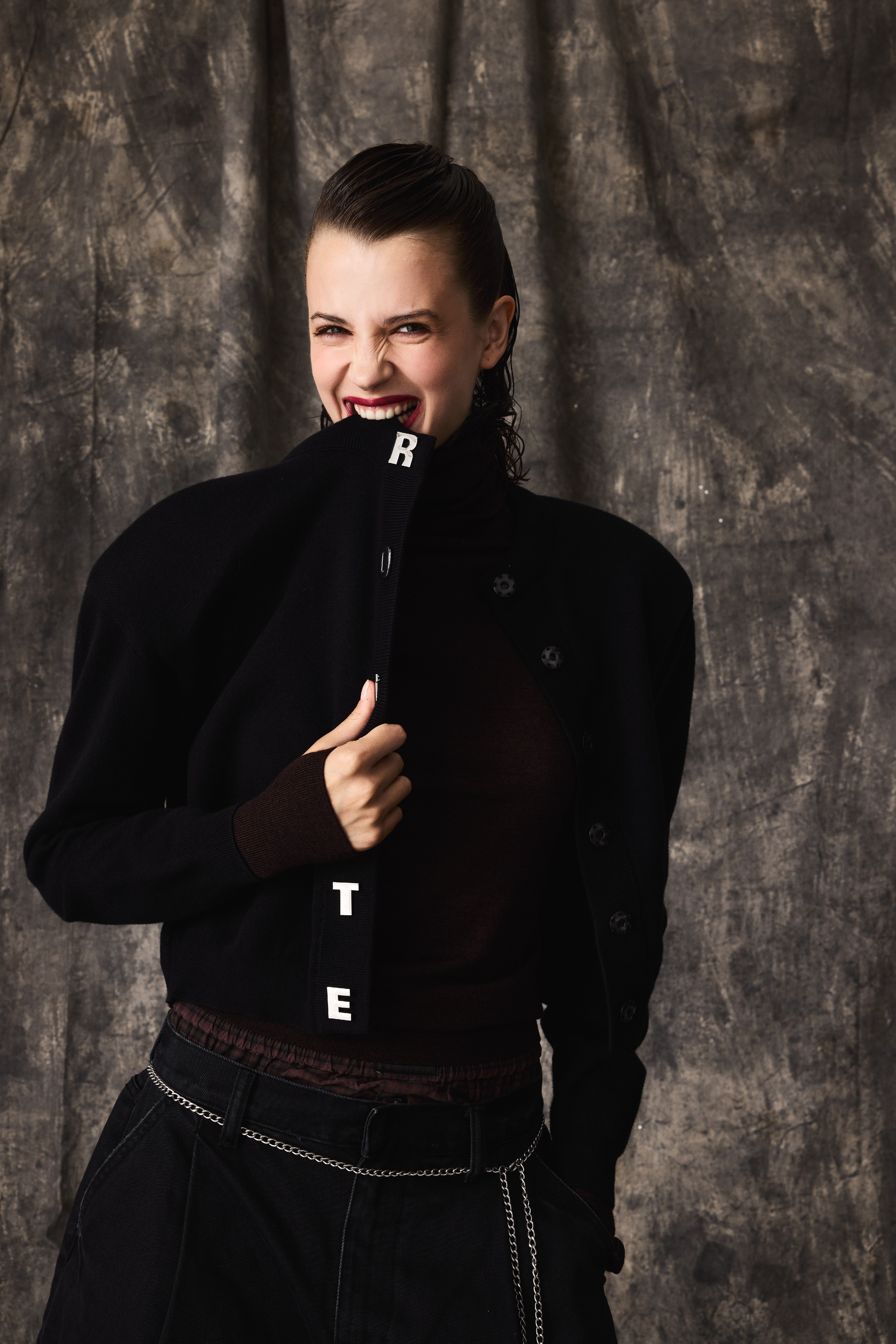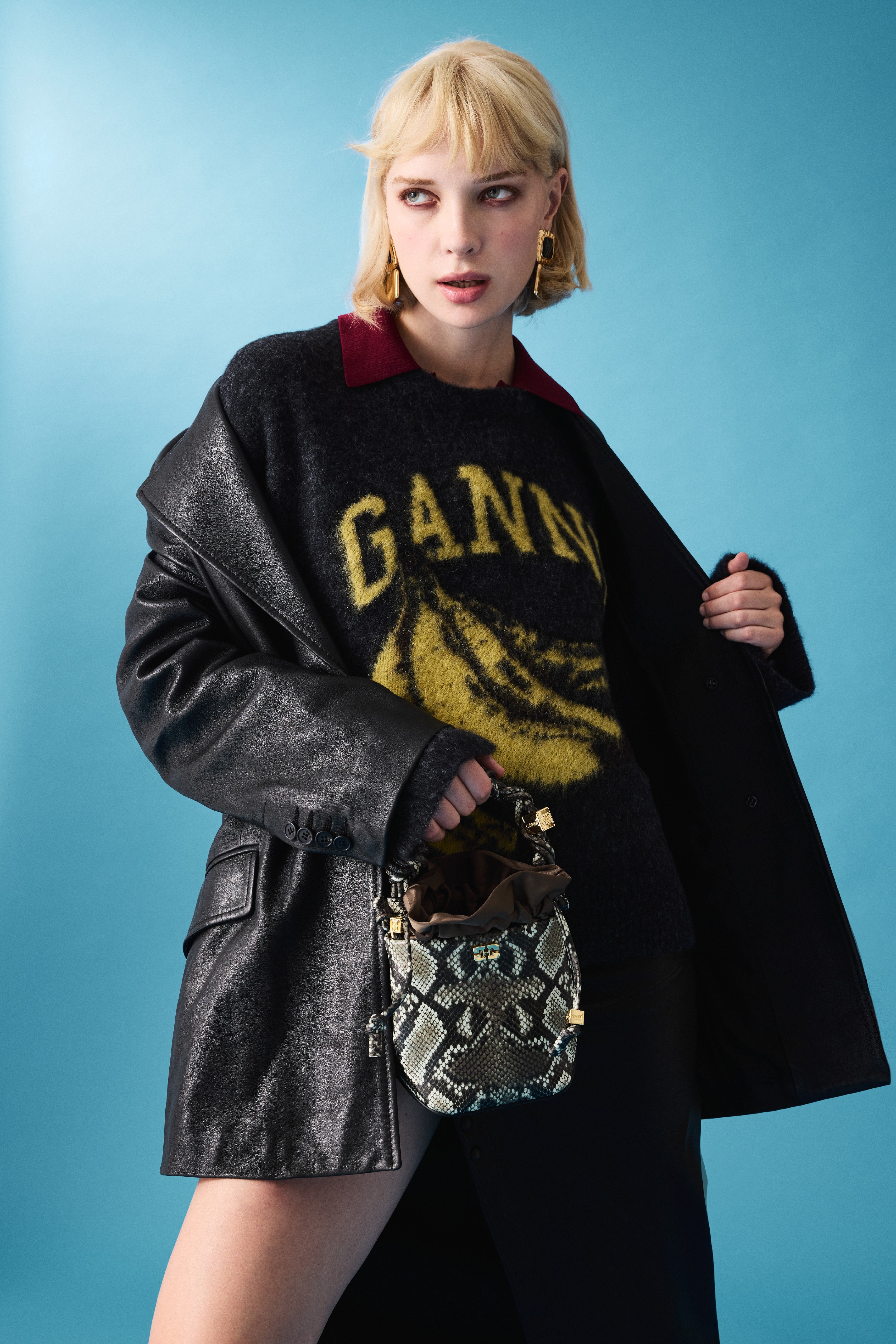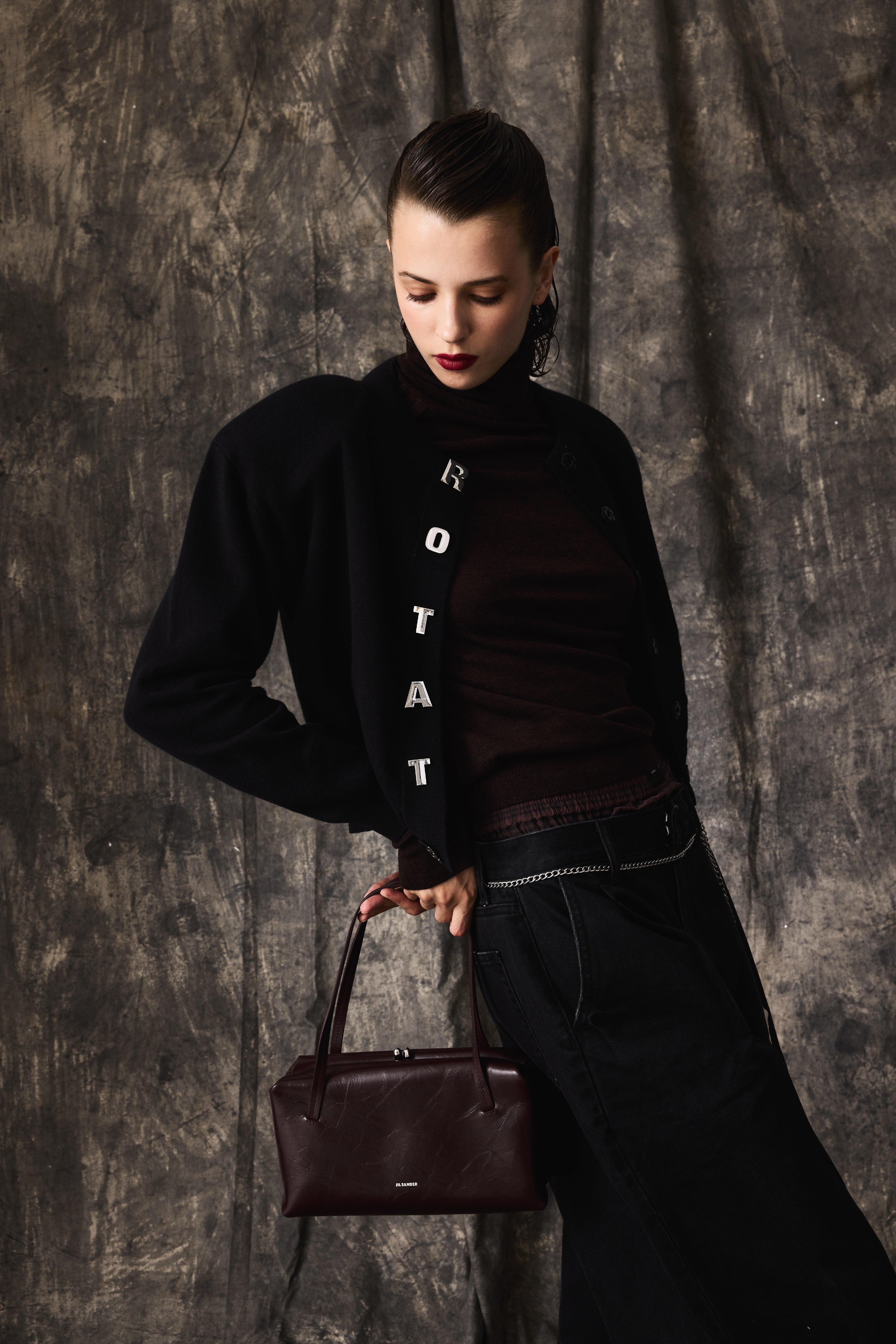 Il trend “New Punk Style” esalta la donna che ama un’eleganza ribelle, costruita su materiali intensi e dettagli in metallo. La giacca di pelle nera di The Attico è il punto di partenza ideale per creare un look di carattere da combinare con la polo color bordeaux di Rotate e la gonna con spacco di Courrèges, che aggiunge un tocco sensuale e moderno. Gli accessori completano l’estetica: gli orecchini dorati di Self-Portrait, le décolleté slingback con fiocco di Alberta Ferretti e la borsa pitonata a secchiello di Ganni donano vibrazioni punk ma raffinate.