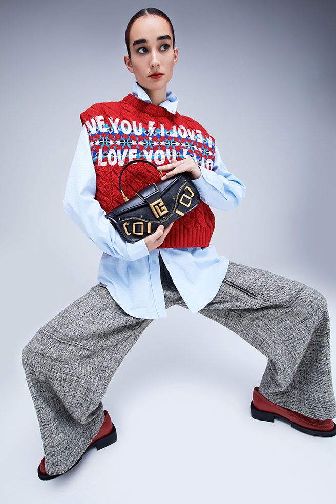 For casual chic outfits, nothing beats the combination of Miu Miu’s light blue women’s shirts, the bright red “I love you” wool vest by Philosophy di Lorenzo Serafini, paired with Stella McCartney’s light grey cropped trousers. It’s a fresh and comfortable mix perfect for various occasions.