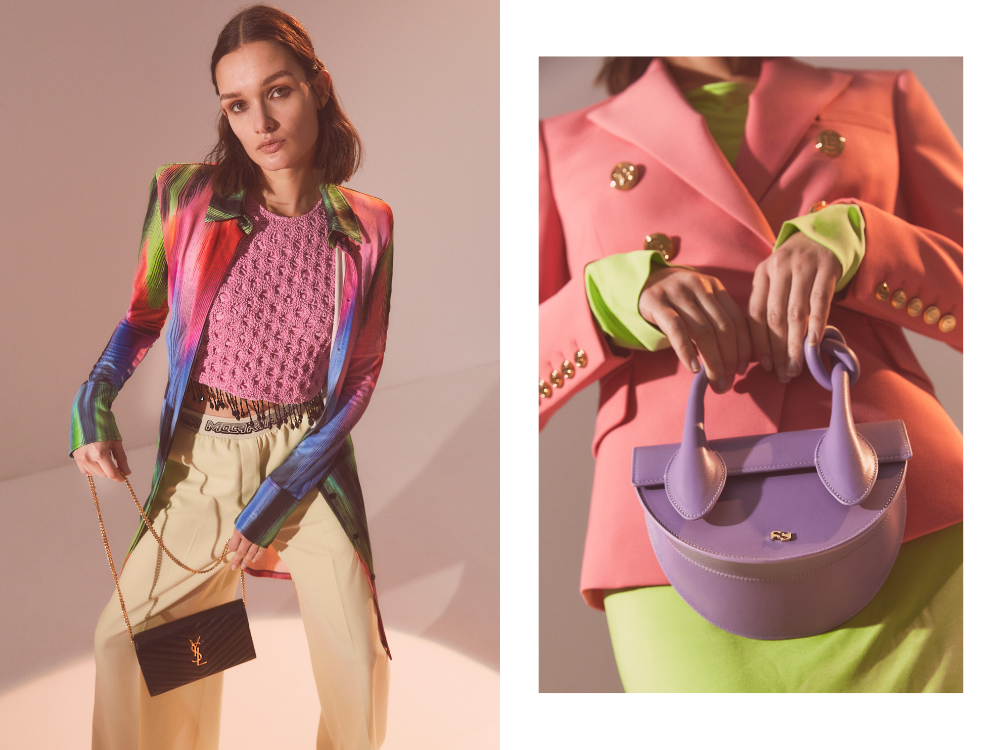 E non finisce qui! Se preferisci un look più classico, punta sul blazer doppiopetto rosa di Balmain, oppure scegli accessori iconici come la crossbody bag di Burberry e la handbag lilla di Yuzefi.